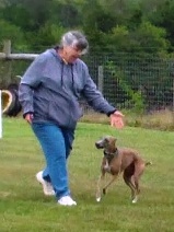 Background: See more about My Dogs here. Char trained her first competition dog, a Great Pyrenees, in AKC obedience and conformation as a high school student. She continued training in obedience and competing with her variety of dogs off and on through the years- in between training her horses, raising sheep and working as a veterinary technician. In this scenario Char also trained several working farm dogs. Through the years Char has trained in different sports and organizations including obedience, rally, agility, tricks, treibball and parkour. One of her mixed breeds, “Little Miss Dynamite Abby” was one of the first two All Americans in AKC history to earn the Obedience Versatility title. Char’s current training partners are “Flash” (Whippet) and “Wilkie” (Cirneco dell Etna x Whippet). They train for enrichment in canine fitness, scent sports, and cooperative care.