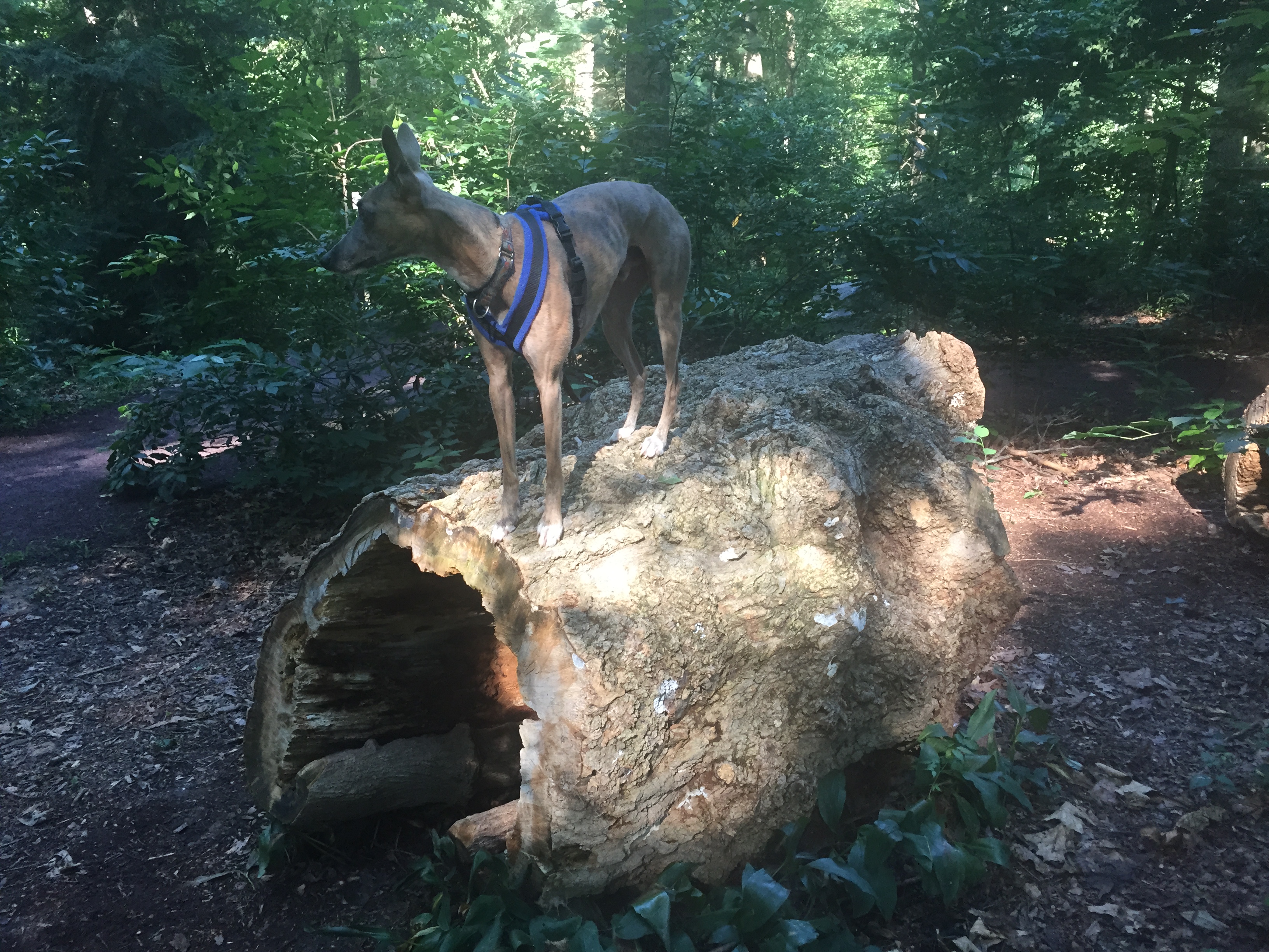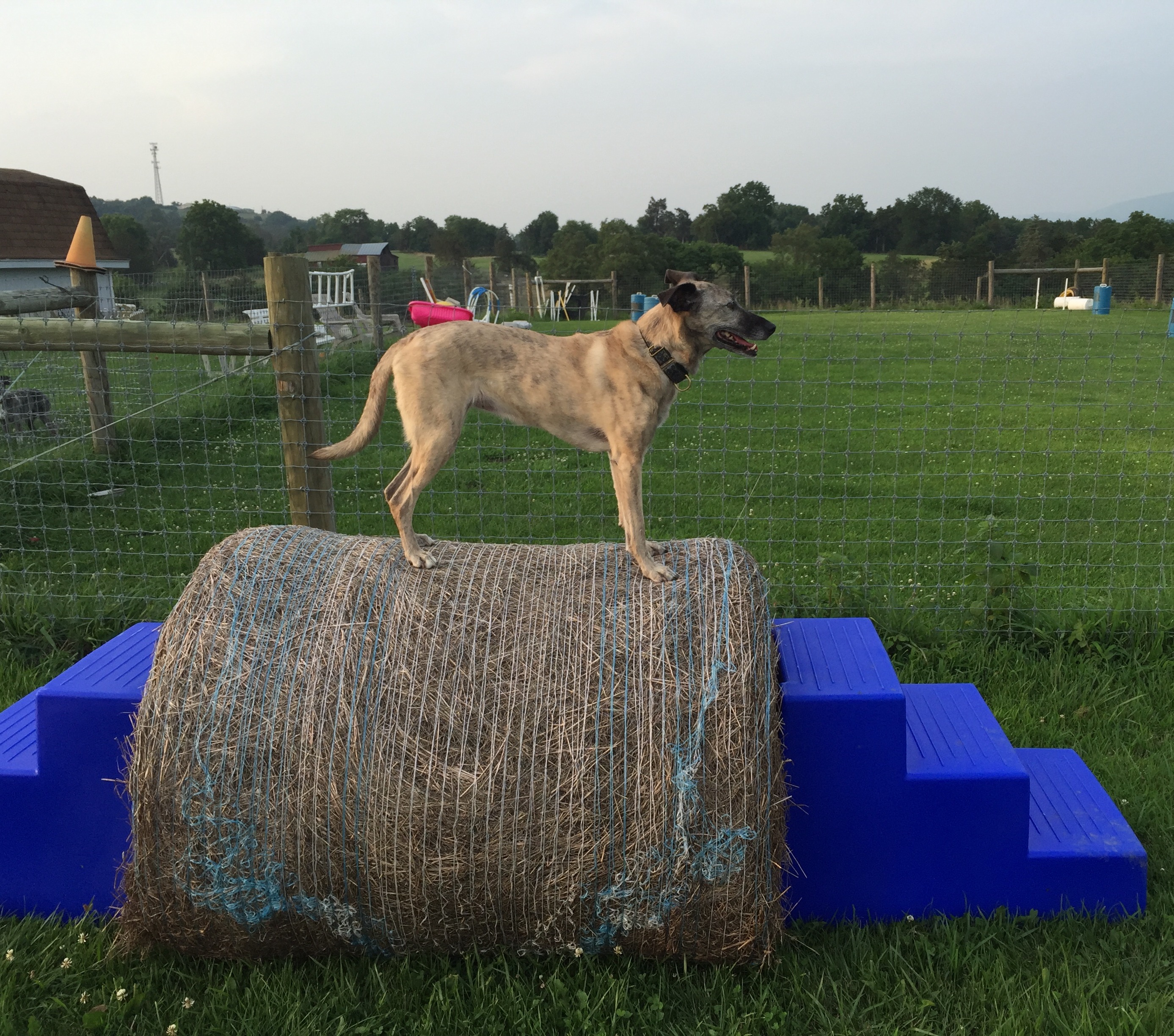 Long before AKC Fit Dog and canine fitness trainer certifications, there was Dog Parkour! Dog Parkour is all about relationship, fun and creativity. It combines tricks, fitness, and obedience all in one fun activity. Parkour by definition is using the environment for playing and training. The great thing about it is that you can do it anywhere, anytime, using whatever obstacles are present and available-trees, benches, bike racks, tires, etc. There is training involved of course, but Parkour allows the flexibility to choose appropriate obstacles for your dog’s ability, and the creativity to train a variety of fun behaviors on cue. We “parkour” during our walks in public parks, on the college campus where I work, and here at home on the farm.